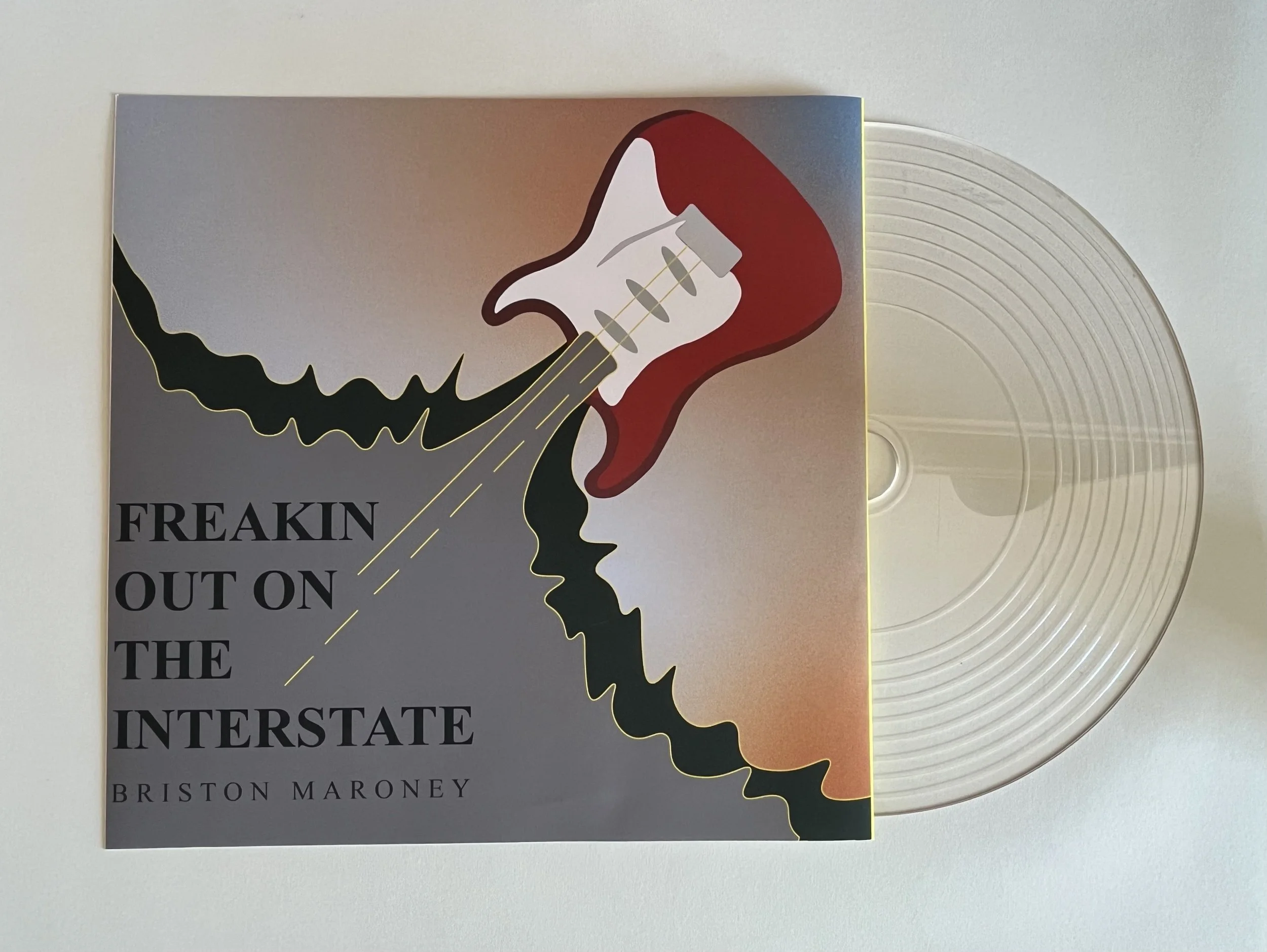 A redesigned vinyl cover for Briston Maroney’s single Freakin’ Out on the Interstate, developed to visually reflect the song’s tone and aesthetic. The concept leans into illustration and texture to evoke its emotional depth and sense of movement. The final design was produced in physical form to explore how music and visual identity intersect in print.